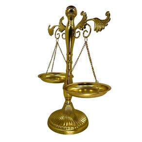 Adicione um toque de elegância e simbolismo ao seu ambiente com esta majestosa Balança da Justiça decorativa. Fabricada em metal com acabamento dourado luxuoso, esta peça apresenta um design clássico que remete à tradição e solenidade. Com dimensões impressionantes de 47 cm de altura, 38 cm de largura e 18 cm de profundidade, esta balança se destaca como elemento decorativo em escritórios de advocacia, tribunais ou ambientes que buscam transmitir equilíbrio e justiça. Os detalhes ornamentados incluem acabamentos em folhas decorativas na parte superior e uma base robusta com padrão ondulado. As duas bandejas perfeitamente equilibradas são sustentadas por correntes douradas, criando um visual harmonioso e sofisticado. Com peso aproximado de 850g, esta peça da Brás Continental combina durabilidade com beleza atemporal, sendo ideal para decoração de ambientes profissionais ou residenciais que buscam um toque de distinção e simbolismo.