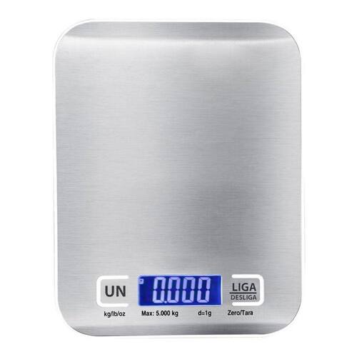 Balança Digital Para Até 5 Kg Ideal para cozinha, confeitaria e medição de alimentos. Cor: Prata Modelo: Digital Marca: Lazi Medidas aproximadas do produto - Comprimento: 1 cm - Altura: 15 cm - Largura: 10 cm - Peso: 292 g