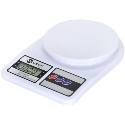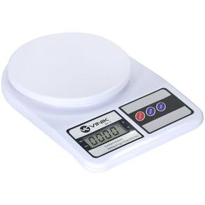 Características: Divisão de 01 grama. Indicador de baixa bateria. Capacidade máxima de pesagem: 5 Kg Função Tara. zerar o display Função Modo escolher unidade de medida . Base e prato de pesagem em plástico. Pés emborrachados na base inferior. Unidades de medidas disponíveis: Onça oz ou Grama gr . Cor: Branco. Obs.: Utiliza 02 pilhas AA Não Inclusas Ean: 7898547283771