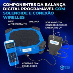 Itens inclusos: Balança digital, controle remoto, solenoide e maleta de