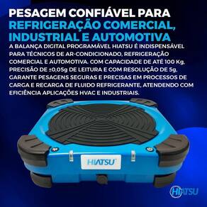 A Balança Digital Programável Hiatsu BPH-100W é a solução ideal para profissionais que atuam com sistemas de ar-condicionado, refrigeração comercial e automotiva. Projetada para oferecer pesagens precisas, rápidas e seguras, ela garante total controle durante o processo de carga e recarga de fluido refrigerante.