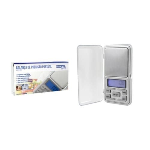 Características: De tamanho compacto, tem tampa em acrílico para proteção e suporta até 500g .O visor lcd de 0.6" tem iluminação, facilitando o uso em diversas situações. Utiliza 2 pilhas aa e tem função de desligamento automático.