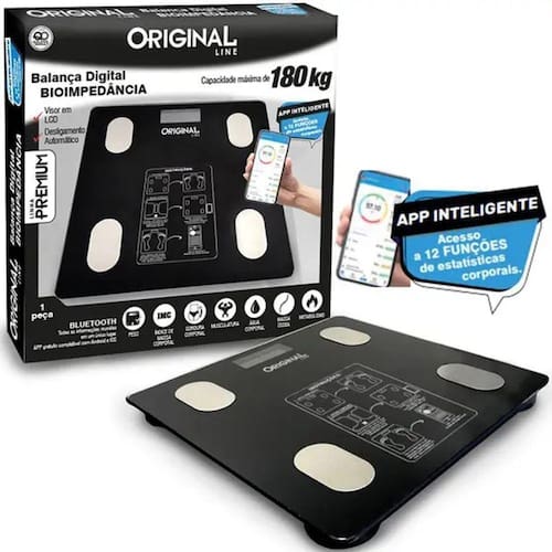 Balança Digital Bioimpedância Corporal Vidro 180kg Bluetooth Ideal para cuidar da boa forma, com funcionamento fácil sistema que liga automaticamente e desliga sozinha essa balança além de fazer a pesagem ela calcula o percentual de gordura e água, metabolismo, massa óssea e massa muscular. Utilize o aplicativo para monitorar as pesagens, conecte-se através do Bluetooth e tenha tudo isso na palma da sua mão. Especificações: Indicada para uso domestico Display de LCD Digital 4 dígitos Sistema de Sensores de Alta Precisão Graduação: 10 g Capacidade: 180 kg ON / OFF Auto – Liga e Desliga automaticamente Fonte de Alimentação: 2 Pilhas AA (Não inclusas)Mede peso, percentual de gordura e percentual de água, metabolismo, massa óssea e massa muscular Conecte-se a balança utilizando o aplicativo Conexão via Bluetooth Duas unidades de medida: kg/lb Registra os dados de até 8 Usuários pelo APP (OKOK-International) Aviso de Sobrecarga Indicação de carga da Bateria Aplicativo: “OKOK Internacional” – Compatível com iOS e Android Conteúdo do pacote: 1- Balança bioimpedância 180kg 1- Manual de Instruções