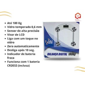 Balança digital corporal de chão banheiro 180 kg Nosso empenho é procurar o que há de mais atual e funcional no mundo culinário e para organização da sua casa, priorizando sempre a qualidade e a versatilidade dos produtos. Se você está tentando manter um peso equilibrado, essa balança é confiável e precisa para sua pesagem corporal. Ela permite que você mantenha o controle de um estilo de vida saudável e promove os cuidados de saúde eficazes. Eficiente e prática, é a prova de distraídos, pois conta com um indicador de bateria fraca, para que você possa trocar a bateria e tê-la sempre à mão. Graças ao seu desligamento automático, você evitará se preocupar em deixá-la ligada, pois, na ausência de movimento, ela será desligada e irá reservar a sua energia para o próximo controle. - capacidade para até 180 kg- vidro temperado 0,6 mm- sensor de alta precisão- visor de lcd- liga com um toque no vidro- zera automaticamente- desliga após 10 seg.- indicador de bateria fraca- funciona com 1 bateria cr2032