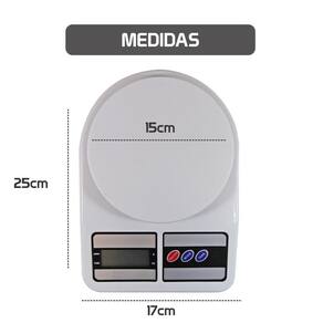 - Uma balança digital de alta precisão - Capacidade: 3g até 10kg - Material Plástico - Medidas: 23x16x3 cm