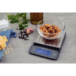 A balança digital de alta precisão para cozinha Tramontina Adatto com base em aço inox é essencial para quem deseja garantir a medida certa de todos os ingredientes da sua receita. Com capacidade máxima para três kilos, ela tem base em aço inox de alta precisão e oferece dois sistemas de medida: métrico (g) e imperial (lb:oz). Para maior praticidade, ela possui indicação de pilhas fracas, sobrecarga, função de tara e ainda conta com desligamento automático. Uma balança com a qualidade Tramontina, que você já conhece e confia!