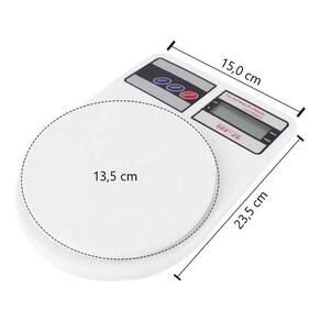 Balança Cozinha Digital de Precisão 10kg Cor: Branco Balança de precisão Ideal para o preparo de receitas e separação de porções de alimentos Características: Suporta 1 grama até 10 kilos Display em led Sistema de auto precisão Auto reiniciação Desligamento automático Identificador de excesso de peso e Bateria fraca Itens Inclusos: 1 x Balança 1 x Embalagem Marca: Não Informado