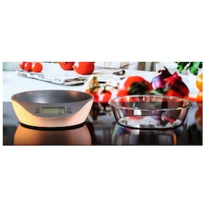 Prática, conta com uma tigela de plástico que se encaixa na base balança auxiliando nas medições.