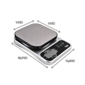 medida da base de apoio: 13,50 x 13,5cm carga máxima: 5kg base de aço inox tara mínima 1g não acompanha pilha é utilizado 02 pilhas aaa