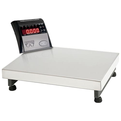 Equipamento eletrônico de alta precisão para pesagens de até 150 kg, a Balança Ramuza Industrial foi desenvolvida especialmente para áreas de recebimento, processamento, expedição e controle interno de mercadorias! Conta com plataforma de pesagem projetada em aço carbono, estrutura altamente resistente com perfil baixo e célula única, contando com pintura époxi grafite. Possui pés de borracha resistentes evitando que a balança saia do lugar.