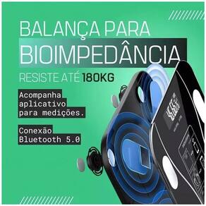 Balança Inteligente Bioimpedância com Bluetooth e App 180kg Balança Digital Bioimpedância 180KG Com Aplicativo de Celular Medir Massa Corporal IMC Consultório Balança Digital Smart Corporal - BioImpedância e IMC Gordura Corporal Perfeita para quem busca uma vida saudável Balança eletrônica com Bluetooth, suporta até 180KG Além de medir seu peso, você consegue informações como IMC, Gordura, e massa muscular, água, gordura visceral, ossos e metabolismo. Tudo através do aplicativo. Conectando a balança com o aplicativo você pode ter acesso a indicadores sobre sua saúde, além de poder acompanhar seu progresso a partir de gráficos e histórico; - Suporta até 180 kg; - Dados em tempo real; - Conexão via Bluetooth; - Display de LCD Digital 4 dígitos Sistema de Sensores de Alta Precisão Graduação: 10 g Capacidade: 180 kg ON Auto - Liga automaticamente OFF Auto - Desliga automaticamente Fonte de Alimentação: 2 Pilhas AAA Mede peso, percentual de gordura e percentual de água, metabolismo, massa óssea e massa muscular Conecte-se a balança utilizando o aplicativo Conexão via Bluetooth 4.0 Duas unidades de medida: kg/lb Compatível: Com qualquer aparelho celular Registra os dados de até 8 Usuários pelo APP Aviso de Sobrecarga Indicação de carga da Bateria Homologação Inmetro: CE-BRI/IDEAL 00132/22-01 Marca: Não Informado Ean: 7895688612484