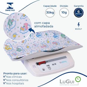Balança Pediátrica Digital 30kg com Capa - Welmy Cor Branco Cuide da saúde e do bem-estar dos pequenos com precisão e confiança Nossa balança digital é ideal para clínicas pediátricas e consultórios médicos, garantindo pesagens exatas e seguras para bebês e crianças até 30kg. Principais características: - Capacidade de até 30 kg, com divisões precisas de 10 g, ideal para acompanhar o crescimento saudável dos bebês; - Display LED duplo: leitura fácil para operador e paciente, com dígitos claros de 20 mm de altura. - Concha anatômica com medidas 540x280 mm, feita de material anti-germes, garantindo higiene e segurança durante o uso. - Painel à prova de respingos e teclas práticas para operações de ZERO e TARA. - Função TARA até 100% da capacidade de pesagem, proporcionando maior praticidade. - Aprovada pelo INMETRO e aferida pelo IPEM, conforme Portaria 177/2020. - Fonte externa bivolt 110 a 240 VAC com chaveamento automático e tecnologia de ponta. - de fábrica de 6 meses e assistência técnica em todo o Brasil. Dimensões: Altura: 14cm Largura: 37cm Comprimento: 37cm Peso bruto: 3,500kg Capacidade até 30kg, alta capacidade, divisões precisas, pesagem detalhada, cuidado infantil, pediátrico, pesagem de bebês, acompanhamento de crescimento, precisão, exatidão, confiabilidade, alta qualidade, , monitoramento de saúde, acompanhamento pediátrico, balança digital, leitura clara, display de LED, fácil uso, operação intuitiva, design ergonômico, suporte confortável, aprovado pelo INMETRO, uso médico. Homologação Inmetro: ITAC-OCP-0057/2021