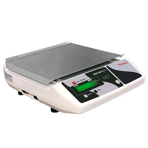- Fabricante: Urano - Modelo: UDC 20/2 - Capacidade: 20kg - Resolução: 2g/5g - Divisão: 2g de 0kg a 6kg / 5g de 6,005kg a 20kg - Função de tara sucessiva - Bandeja de pesagem: 310x270mm em aço inoxidavel - Bateria com autonomia de até 300h - Fonte carregadora bivolt automatica (110/220V) - Saida Serial (RS-232C) - Display de cristal líquido (LCD) com 6 dígitos - Homologada pelo INMETRO atraves da Portaria Inmetro/Dimel n°366/2021 , ou seja, apta a trabalhar em estabelecimentos abertos ao publico. - Garantia de 12 meses com ampla rede de assistencias tecnicas autorizadas no Brasil.