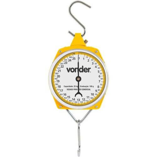 A Balança Suspensa Tipo Relógio Amarela Vonder 25 Kg é ideal para pesagens em geral em chácaras, fazendas e sítios. Com capacidade de até 25 kg, ela é perfeita para pesar ração, aves, suínos, ovinos, caprinos e outros produtos rurais.