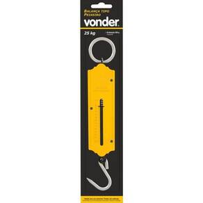 Balança Tipo Peixeiro 25kg Vonder Conteúdo da embalagem 1 Balança Aplicações e dicas de uso Indicada para pesagem de legumes, frutas, carnes, aves, peixes e mantimentos em geral. Observação: vetado o uso comercial, produto não calibrado, podendo ser utilizado apenas para uso doméstico. Destaques e diferenciais Confeccionada em aço carbono e alumínio, proporcionando maior resistência. Acompanha gancho para prender o material ou alimento a ser pesado. DETALHES TÉCNICOS
