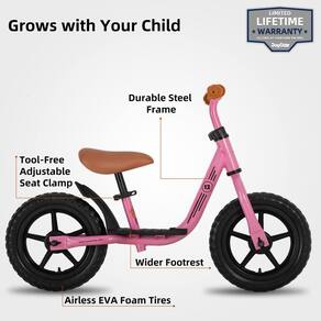 Bicicleta de equilíbrio JOYSTAR de 30 cm para meninos e meninas de 2 3 4 5 anos, bicicleta planadora infantil sem pedal, bicicleta de empurrar para crianças, rosa - Design passo a passo: projete especialmente a estrutura dobrável para crianças de 2 a 5 anos, fácil para elas descerem da bicicleta. - Apoio para os pés – o apoio para os pés está no lugar natural, onde os pés estariam se movendo em uma bicicleta pedalada, ajudando a encontrar seu centro de gravidade. E é mais uma maneira de se divertir. - Pneu sem ar – apenas pouca manutenção necessária, este pneu de espuma de polímero EVA à prova de perfuração minimiza o peso ao limite. - Assento ajustável e guidão - Construído com um assento de liberação rápida para facilitar o ajuste, adequado para crianças de 2 a 5 anos. O assento é ajustável de 32 a 47 cm. O guidão é ajustável de 52 a 57 cm. - Simples de configurar – cada bicicleta vem parcialmente montada. Levará 15 minutos para um novato montar a bicicleta planadora.