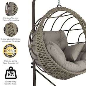 Este balanço suspenso é projetado para proporcionar conforto, estilo e exclusividades em ambientes ao ar livre ou internos. Feito em Alumínio de alta qualidade, apresenta uma estrutura robusta resistente às intempéries, ideal para uso prolongado em jardins, varandas, piscinas, edículas e áreas de lazer.