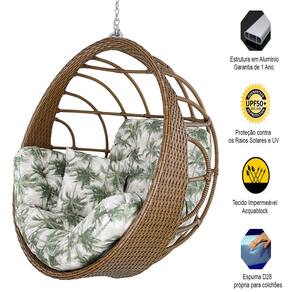 ESPECIFICAÇÕES TÉCNICAS: Balanço Suspenso Hungria: - Altura: 115 cm - Largura: 115 cm - Profundidade: 75 cm - Suporta até 200 kg - Acompanha 1 Almofada de assento, 1 almofada de encosto e 2 almofadas soltas - Acompanha 1 corrente e 2 mosquetões