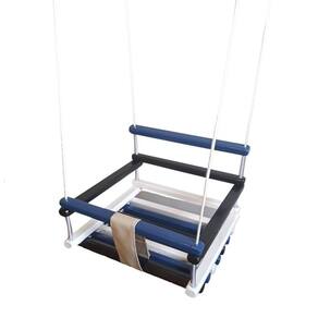 balanço de madeira com separadores de silicone. Cor: azul corda de nailon. . Madeira lixada deixando os cantos bem arredondados, possui encosto que acompanha o crescimento das crianças e as barras de proteção para garantir conforto e diversão. Com um design lindo e super aconchegante para encantar ainda mais a criançada e o seu espaço