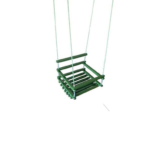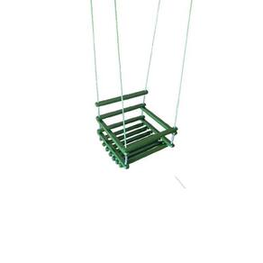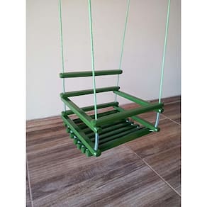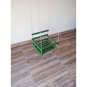 balanço de madeira com separadores de silicone. Cor: verde corda de nailon. . Madeira lixada deixando os cantos bem arredondados, possui encosto que acompanha o crescimento das crianças e as barras de proteção para garantir conforto e diversão. Com um design lindo e super aconchegante para encantar ainda mais a criançada e o seu espaço