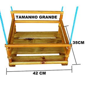 Balanço Infantil Madeira 42 Cm 35 Cm Com 4 Cordas De 3 MProduzidas em madeiras de ótima qualidade são lixadas eliminando rebarbas, é aplicado polisten para prolongar a durabilidade, sem pregos aparentes, possui corda reforçada de nylon, apoio nas costas e laterais com trava frontal para garantir o conforto e segurança na hora da diversão. O grande diferencial de nosso produto é que toda a madeira é tratada com produto que tem ação hidrorrepelente que impermeabiliza e realça os veios da madeira.Todas as crianças adoram balançar, o balanço transforma a brincadeira em um momento magico tanto para criança quanto para o adulto que a auxilia.Especificação:Largura: 42 cmProfundidade: 35 cmAltura do encosto: 26 cmAltura dos apoios de braços laterais: 14 cm Altura da trava frontal: 17 cmAcompanha 4 cordas de nylon de 8 mm com 3 metros em cada ponta Testada com 90 kgAtenção: A tonalidade da cor e veios da madeira varia conforme o lote de produção de cada produto.Não acompanha ganchos de fixação. Marca: Arte Link Utilidades