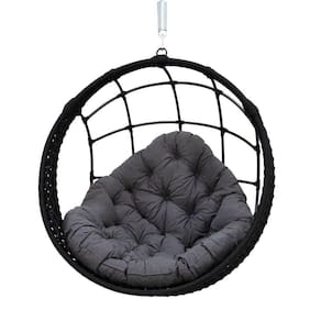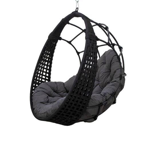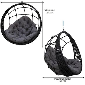 Balanço Ninho Suspenso Corda Náutica Preta Almofada Impermeável Cinza + Mola E Mosquetão