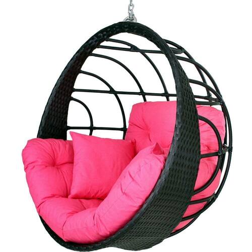 Balanço Ninho Suspenso Hungria Em Alumínio E Fibra Sintética - Teto, Jardim, área Preto E Lisato Pink