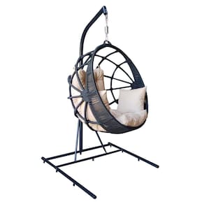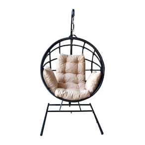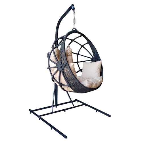 AS IMAGENS SÃO MERAMENTE ILUSTRATIVAS E PODEM SOFRER VARIAÇÕES DE COR E PEQUENOS DETALHES DE ACORDO COM O SEU MONITOR, ILUMINAÇÃO DO AMBIENTE E ATÉ MESMO A SUA PERCEPÇÃO VISUAL.BalanÃo Ninho Suspenso Trama em Corda Estrutura AlumÃno Estofado ImpermeÃvel - Preto