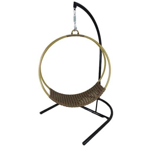 Características: Balanço produzido em alumínio pintado (trabalhamos com a pintura eletrostática) e revestidas em fibra sintética com proteção UV. Suporte produzido em estrutura de ferro com pintura eletrostática dourado escuro craquelado. Nossos produtos são artesanais e podem ocorrer variações na medida de até 2cm. As cores dos produtos podem variar de acordo com o ambiente e com a iluminação em que as fotos foram tiradas. Suporte Para Balanço com Estrutura em ferro