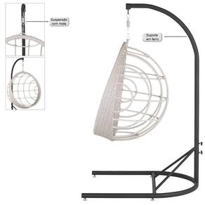 Balanço Suspenso Ninho Em Aluminie Fibra Marmore E Suporte U Preto, Tecido Impermeável - Z36