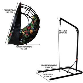 Balanço Suspenso Ninho com Suporte de sustentação móvel com almofada impermeável, mosquetão e mola