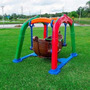 Tudo fica mais temático nesse grande balanço em formato de Barco Viking com a barra de segurança horizontal em formato de corda naval, evitando que os pequenos caiam dos assentos.