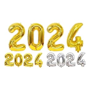Balao 2024 Ano Novo 4 Balão 70cm Metalizado 2024 enviado vazio para o cliente encher com bomba de encher balão simples, pode encher com canudo Comum .Possui válvula, e deve ser cheio com bombas de inflar. (A válvula permite que após o enchimento não seja necessário que prenda a boca do balão com fita. Pois a válvula trava o ar automaticamente após o enchimento.) Modelo: Balão NUMERO ATENÇAO:NAO FLUTUA C/ GAS HELIO * * Medidas: (Aproximadamente) 70cm. Material: metalizado. os baloes sao enviado murcho* ATENÇAO*** ENCHER SEMPRE MENOS QUE A CAPACIDADE DO BALAO.