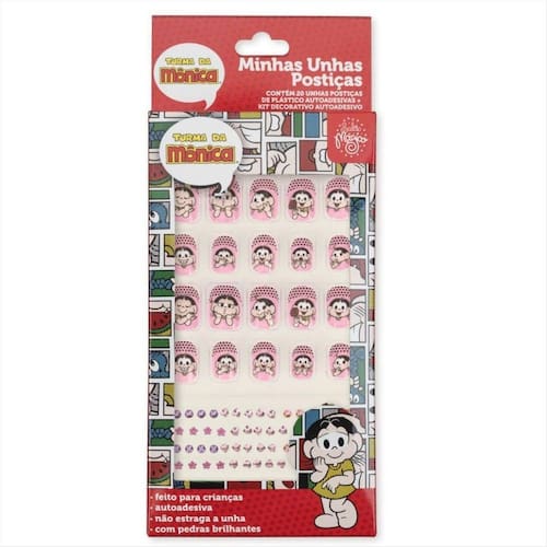 Ingredientes e Composição: As unhas postiças Balão Mágico são feitas de um material leve e seguro, projetado especialmente para as delicadas unhas infantis. Com designs inspirados na Turma da Mônica, cada unha traz à vida os personagens mais amados como Mônica, Cebolinha e Magali. Cada kit inclui 24 unhas em diferentes tamanhos e um adesivo especial para fixação, garantindo que a diversão esteja sempre ao alcance