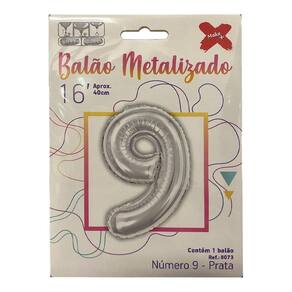 Balão Metalizado 16 Número 9 1 Unidade Prata Make +