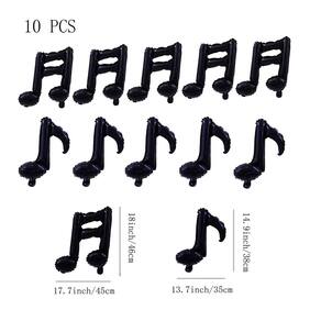 Materiais de festa com tema musical perfeito, suprimentos de festa rock and roll, ótimos para recepções, festas, apresentações de bufê, festa de aniversário de música, casamento, chá de panela, chás de bebê, buffets de doces, mesas de sobremesa e muito mais. - Tamanho: 10 peças incluem 5 peças de nota musical única e 5 peças de notas musicais duplas (17" de altura) sem inflação. - 2 peças de canudo e ponto de cola de dupla face. Use o canudo de plástico inflar o gás lentamente até 85% de enchimento e mantenha longe do fogo. Quando o balão estiver suficientemente inflado, retire o canudo e aperte a válvula de plástico autovedante. - Adequado para qualquer idade ou sexo. - Use para aniversário, festa de aniversário, chá de bebê, festa ao ar livre, festa em casa, celebrações