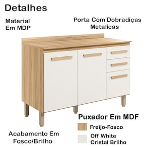 Balcão 03 Portas 120 cm com Tampo 16988 acabamento refinado e visual sofisticado. Estrutura em MDP, com caixa de 12 mm e frente em 15 mm, e excelente acabamento em Fosco/Brilho. O Balcão é composto por 03 portas, com dobradiças metálicas para garantir a suavidade no abrir e fechar, 02 gavetas com corrediças telescópicas, 01 prateleira e puxadores em MDF. Acompanha 05 pés com regulagem de altura de 15,5 cm mais 1,5 de regulagem. Acompanha Tampo. Este móvel chegará em sua casa separado em 01 volume.