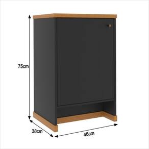 Estrutura em MDP, tampo em 25 mm, 1 porta articulada com dobradiças metálicas, 1 prateleira interna, puxador em ABS e pés ripado em MDP com sapatas plásticas.