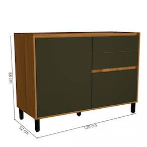 Características: Estrutura em MDP 1 Porta Dobradiças Caneco de 35 mm com amortecimento 3 Gavetas Corrediças telescópicas 1 Prateleira Pés reguláveis Puxadores ocultos Acabamento pintura UV