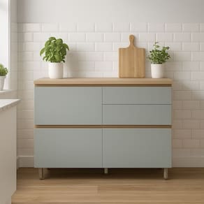 Características: 4 Gavetas com corrediças telescópicas -inclui porta-tempero e organizador de talheres- 1 Porta com pistão a gás Acabamento em polipropileno -proteção contra umidade- Acompanha parafusos de fixação e montagem reforçada Adaptável para pia ou cooktop Estrutura 100 em MDF Gavetão reforçado com régua de fundo, suporta até 30 kg Impressão de alta qualidade nos padrões madeirado, branco e verde Pés de 100 mm reguláveis com pintura Puxadores tipo cava/gola Tampo de 30 mm