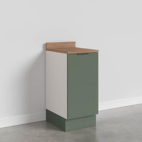 Balcão 1 Porta 40cm Com Tampo Com Rodapé Puxador 150mm Ipanema é um móvel com design moderno e elegante, ideal para compor a decoração da sua cozinha. A porta, tampo e caixaria são fabricadas em MDP e possuem acabamento em BP, materiais de alta qualidade e resistência, proporcionando durabilidade e praticidade no uso diário. O tampo com padrão Acácia e a porta em Branco conferem sofisticação ao móvel, enquanto o rodapé Branco e o puxador de 150mm adicionam um toque de elegância ao design. Já as dobradiças com amortecimento garantem um fechamento suave e silencioso das portas, ao mesmo tempo que a prateleira central confere versatilidade e praticidade no armazenamento de objetos diversos. A fita de borda em PVC e o rodapé plástico trazem maior proteção contra umidade e prolongam a vida útil do móvel, além de ser fácil de limpar. Uma opção prática e funcional para quem busca organização e estilo em sua casa. Suporta Granito: Sim Acabamento da Prateleira: BP Melamínico Escala de Brilho da Prateleira: Fosco Acabamento da Porta: BP Melamínico Escala de Brilho da Porta: Fosco Material do Puxador da Porta: Alumínio Produto Montado: Sim Acabamento: BP Melamínico Acabamento dos Pés: Liso Acompanha Tampo: Sim Altura dos Pés: 16 cm Ambiente Principal: Cozinha Balcão Acompanha Pia: Não Cesto para Frutas: Não codigo_ean: 7909903330197 Complexidade da Montagem: Média: pode ser montado por mais de uma pessoa e/ou necessite de maior conhecimento para montagem Cor: Verde Folha/Branco Cor do Produto: Verde Folha/Branco Cor Interna: Branco Escala de Brilho: Fosco Informações Complementares: 13 cm fechado e 16 cm aberto Itens Inclusos: 1 Balcão 1 Porta, Tampo, Rodapés, Manual de Montagem e Kit Ferragens Linha ou Coleção: Ipanema Manual de Montagem e Instalação: https://product-hub-prd.madeiramadeira.com.br/854629/documents/a81cf623-be9e-4ae9-b6af-cfc673f73d6b6979ipn04bmanualdemontagem.pdf Material da Dobradiça/Corrediça da Porta: Metálica Material da Porta: MDP Material da Prateleira: MDP Material do Tampo: MDP Material dos Pés: Plástico Medida do Tampo (L x C x E): 40cmx52cmx9,5cm Necessita Montagem: Sim O Balcão Acompanha Pia: Não Origem do Produto: Nacional Pés Reguláveis: Sim Peso: 19,96 kg Peso Máximo por Prateleira: 5 kg Possui Pés: 04 Possui Portas: Sim Possui recorte para Cooktop: Não Recomendações de Uso, Manutenção e Limpeza: Use um pano levemente umedecido com água, seguido de pano seco. Não utilize produtos químicos ou abrasivos. Sapatas Niveladoras: Não Sistema de Montagem: Sistema de montagem via cavilhas, parafusos, minifix e pregos. Suporta Até (kg): 5 kg Tipo de Dobradiça/Corrediça da Porta: Soft close Tipo de Porta: Bater Tipo de Puxador da Porta: Externo