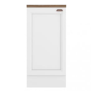 Características: 1 Porta de bater Tampo de 27mm de espessura Dobradiças de 35mm Prateleira interna Puxador retrô em polímero metalizado Pés reguláveis PVC de 14,5 cm Rodapés removíveis com presilhas modelo click. Material MDP