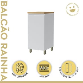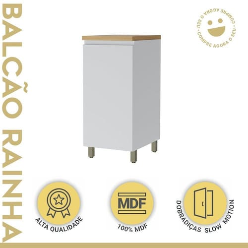 Fita de acabamento e proteção dos topos 100% em polipropileno, assegurando maior proteção contra umidade e melhor acabamento. Suporta Granito: Não Acabamento da Prateleira: Impressão Escala de Brilho da Prateleira: Fosco Acabamento da Porta: Impressão Escala de Brilho da Porta: Fosco Acabamento: Impressão Acabamento dos Pés: Pintura Acompanha Tampo: Sim Altura dos Pés: 10 cm Ambiente Principal: Cozinha Balcão Acompanha Pia: Não Cesto para Frutas: Não Complexidade da Montagem: Média: pode ser montado por mais de uma pessoa e/ou necessite de maior conhecimento para montagem Cor: Branco/Marrom Cor do Produto: Branco/Marrom Escala de Brilho: Fosco Espessura do Material da Estrutura: 15 mm Itens Inclusos: 1 Balcão e manual de montagem. Manual de Montagem e Instalação: https://product-hub-prd.madeiramadeira.com.br/900398/documents/230fa574-de40-4d92-b6d9-90b1076569bfortanesherrainha40cm100mdf.pdf Material da Dobradiça/Corrediça da Porta: Metálica Material da Porta: MDF Material da Prateleira: MDF Material do Tampo: MDF Material dos Pés: Plástico Medida do Tampo (L x C x E): 40cmx52cmx30mm modular: Não Necessita Montagem: Sim Origem do Produto: Nacional Pés Reguláveis: Sim Peso: 24,5 kg Peso Máximo por Prateleira: 10 kg Possui Pés: 04 Possui Portas: Sim Possui recorte para Cooktop: Não Recomendações de Uso, Manutenção e Limpeza: Limpar com pano macio e levemente umedecido. Não utilizar solventes a base e de inflamáveis. Não utilizar produtos abrasivos. Sapatas Niveladoras: Não Sistema de Montagem: Parafusos, cantoneiras e buchas. Suporta Até (kg): 25 kg Tipo de Dobradiça/Corrediça da Porta: 35 mm Tipo de Porta: Bater Tipo de Puxador da Porta: Embutido