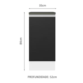 Possui uma porta convencional e divisão interna com uma prateleira e bom espaço disponível. O móvel contempla o tampo do balcão em pintura Nero Marquina e os pés são em PVC, com rodapé removível em MDF de fácil encaixe.