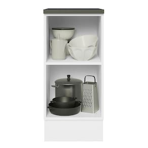 O Balcão de 35 cm da linha Acordes da Madesa é produzido em 100% MDF e composto por materiais de alta qualidade, como puxadores em alumínio e dobradiças metálicas.