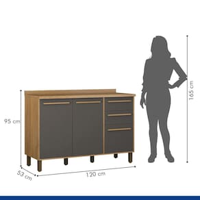 Preparar aquela receita especial vai ficar muito mais prático com a presença do Balcão Salvador. Além de oferecer nichos de tamanho ideal para acomodar panelas, produtos de mercearia e até eletrodomésticos, ele também conta com gavetas para guardar talheres, panos de prato e utensílios indispensáveis na hora de cozinhar - o tampo também é uma ajuda e tanto para picar alimentos ou apoiar itens de decoração! Por fora, a estrutura básica e cor leve são ótimas para ajudar a compor o espaço gourmet dos sonhos já que harmonizam bem com outras tonalidades e acessórios que usar para criar um cantinho com a sua personalidade. Daí é só combiná-lo com armários aéreos ou paneleiros e aproveitar as vantagens de ter tudo fácil de alcançar e bem organizado. Suporta Granito: Não Acabamento da Prateleira: Pintura UV Escala de Brilho da Prateleira: Fosco Acabamento da Gaveta: Pintura UV Escala de Brilho da Gaveta: Fosco Material do Puxador da Gaveta: MDF Acabamento da Porta: Pintura UV Escala de Brilho da Porta: Fosco Material do Puxador da Porta: MDF Acabamento: Pintura UV Acabamento dos Pés: Pintura Acompanha Tampo: Sim Altura dos Pés: 13 Ambiente Principal: Cozinha Balcão Acompanha Pia: Não Complexidade da Montagem: Média: pode ser montado por mais de uma pessoa e/ou necessite de maior conhecimento para montagem Cor: Cinamomo/Grafite Cor do Produto: Cinamomo/Grafite Escala de Brilho: Fosco Gaveta com Chave: Não Itens Inclusos: 1 Balcão, Kit Ferragens e Manual de Montagem Manual de Montagem e Instalação: https://cdn2.madeiramadeira.com.br/atributo/valdemoveis/1234598-esquema-de-montagem-balcao-1200-salvador.pdf Material da Dobradiça/Corrediça da Porta: Metálica Material da Gaveta: MDP Material da Porta: MDP Material da Prateleira: MDP Material do Tampo: MDP Material dos Pés: Plástico Medida do Tampo (L x C x E): 120cmx53cmx15mm Necessita Montagem: Sim Origem do Produto: Nacional Pés Reguláveis: Sim Peso: 39.5 Peso Máximo por Gaveta: 5 Peso Máximo por Prateleira: 10 Possui Pés: 06 Possui Portas: 03 Possui recorte para Cooktop: Não Recomendações de Uso, Manutenção e Limpeza: Limpar com pano macio e levemente umedecido. Não utilizar solventes a base e de inflamáveis. Não utilizar produtos abrasivos. Sapatas Niveladoras: Sim Sistema de Montagem: Parafusos. Suporta Até (kg): 45 Tipo de Corrediça da Gaveta: Telescópica Tipo de Dobradiça/Corrediça da Porta: 35 mm Tipo de Porta: Bater Tipo de Puxador da Gaveta: Externo Tipo de Puxador da Porta: Externo
