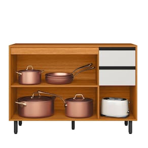 O balc?o acompanha tampo com espessura de 15mm, e, para usar o balc?o para pia a fixa??o dos afastadores ? de montagem obrigat?ria, permite acomodar uma pia de at? 120cm x 50cm, oferecendo ainda mais funcionalidade ao produto.