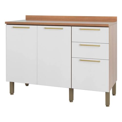 Especificações Técnicas: Marca: Telasul Modelo: Sálvia -908103 Estrutura: MDP Quantidade de Portas: 02 Tipo de Porta: de Bater Material do Puxador: Alumínio Quantidade de Gavetas: 03 Tipo de corrediças: Telescópicas Material das corrediças: Aço Peso suportado por Gaveta: 3kg Quantidade de Prateleiras: 01 Peso suportado pro Prateleira: 20kg
