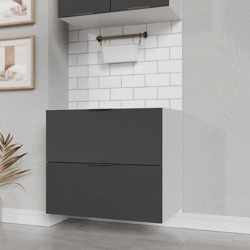Balcão 2 Gavetões com Gaveta Auxiliar Sem Rodapé Ipanema é um móvel com design moderno e elegante, ideal para compor a decoração da sua cozinha. As frentes de gavetas e caixaria são fabricadas em MDP e possuem acabamento em BP, materiais de alta qualidade e resistência, proporcionando durabilidade e praticidade no uso diário. Já as dobradiças com amortecimento garantem um fechamento suave e silencioso da porta, oferecendo maior resistência e praticidade. A fita de borda em PVC traz maior proteção contra umidade e prolonga a vida útil do móvel, além de ser fácil de limpar. Outra característica interessante deste armário é a gaveta auxiliar, uma solução muito útil e conveniente para organizar talheres e tampas de panela. É uma opção funcional que ajuda a maximizar o espaço interno do armário e mantê-lo organizado. Suporta Granito: Sim Acabamento da Gaveta: BP Melamínico Escala de Brilho da Gaveta: Fosco Material do Puxador da Gaveta: Alumínio Acabamento: BP Melamínico Acabamento dos Pés: Liso Acompanha Tampo: Não Altura dos Pés: 14 Ambiente Principal: Cozinha Balcão Acompanha Pia: Não Cesto para Frutas: Não Complexidade da Montagem: Média: pode ser montado por mais de uma pessoa e/ou necessite de maior conhecimento para montagem Cor: Grafite Trama/Branco Cor do Produto: Grafite Trama/Branco Cor Interna: Branco Escala de Brilho: Fosco Gaveta com Chave: Não Informações Complementares: Gavetão Suporta Até 7kg; Gaveta Auxiliar Suporta Até 2,3kg; Itens Inclusos: 1 Balcão 2 Gavetões com Gaveta Auxiliar Sem Tampo Sem Rodapé, Manual de Montagem, Kit Ferragens Linha ou Coleção: Ipanema Manual de Montagem e Instalação: https://cdn2.madeiramadeira.com.br/prd/completa-moveis/1717283-IPN12A-MANUALDEMONTAGEM.pdf Material da Gaveta: MDP Material dos Pés: Plástico modular: Sim Necessita Montagem: Sim Origem do Produto: Nacional Pés Reguláveis: Sim Peso: 31.19 Peso Máximo por Gaveta: 7 Possui Pés: 04 Possui Portas: Não Possui recorte para Cooktop: Não Recomendações de Uso, Manutenção e Limpeza: Use um pano levemente umedecido com água, seguido de pano seco. Não utilize produtos químicos ou abrasivos. Sapatas Niveladoras: Não Sistema de Montagem: Sistema de montagem via cavilhas, parafusos, minifix e pregos. Suporta Até (kg): 34.3 Tamanho Indicado do Tampo (L x P): 80cmx52cm Tipo de Corrediça da Gaveta: Telescópica Tipo de Puxador da Gaveta: Externo