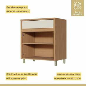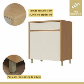 Ideal para cozinhas compactas! Fabricado 100% em MDF, conta com 2 portas e 1 gaveta espaçosa com corrediça telescópica, oferecendo organização prática e eficiente. Estrutura resistente, acabamento semi-brilho na cor Carvalho/Greige e pés reguláveis para maior estabilidade.